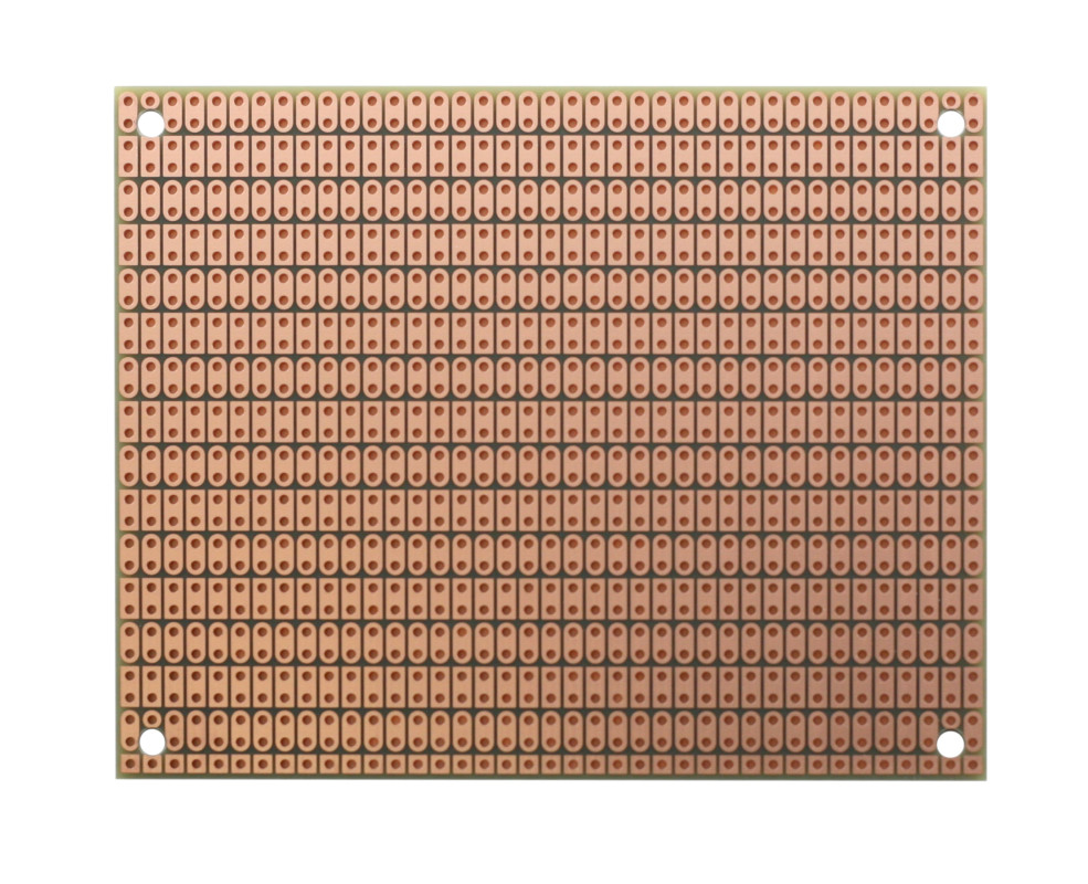 • 31 x 39 holes, 0.037" holes are drilled on 0.1" (2.54mm) centers. Four 0.125” mounting holes.