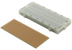 BreadBoard-300 is a solderless (plug-in) breadboard with 300 connection tie-points (i.e. 300 wire insertion holes). Solderless breadboards are great for building and testing new circuits because parts can be easily inserted and removed. They are completely re-usable. The BB300 has a 300 tie-point IC-circuit area. The housing is made of white ABS plastic, with a printed legend giving numbers and letters for columns and rows. The internal contacts are phosphor bronze with a plated nickel finish. A peelable adhesive tape backing is provided for attaching it to a surface. BPS BreadBoards are Lead-Free and RoHS Compliant. Finished projects can be moved to the SB300 Solderable PC BreadBoard to make them permanent.The SB300 Solderable PC BreadBoard enables you to transfer your circuit and wires from a plug-in breadboard without recutting wires or changing your layout. The SB300 has the same pattern and spacing as a standard 300 connection point solderless plug-in breadboard. It has a standard 5-hole strip for each IC pin, just like solderless breadboards. However, it has the advantage that soldered joints provide a more reliable long-term connection than solderless contacts. The SB300 has two power rails along the centerline. BPS prototyping boards use high-quality FR4 glass epoxy PCBs for long life, with an anti-tarnish protective coating for easy soldering. BPS boards are lead-free and RoHS compatible.