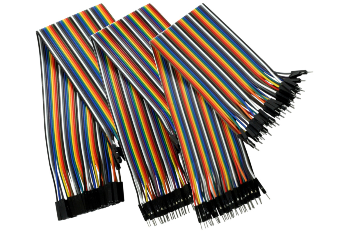 • Multi-color ribbons of 40 wires with male-male, female-female, or male-female connectors in 30cm lengths.